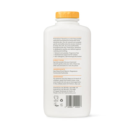 Fresh & Dry Sensitive is a talc free powder specially formulated for those with more sensitive skin. Our all-natural corn powder gently and safely absorbs excess moisture to keep skin soft, dry and comfortable throughout the day. Fresh & Dry Sensitive is designed to soothe and defend against rubbing and chafing.